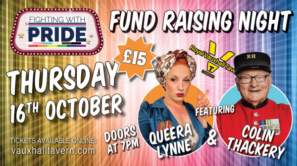Join us for a night to remember with Queera Lynn Britain’s one and only wartime drag queen and the amazing voice of Colin Thackery, Chelsea pensioner, Korean War Veteran and star of Britain’s Got Talent, both raising funds for our friends at Fighting With Pride – the Armed Forces LGBTQ+ Charity.