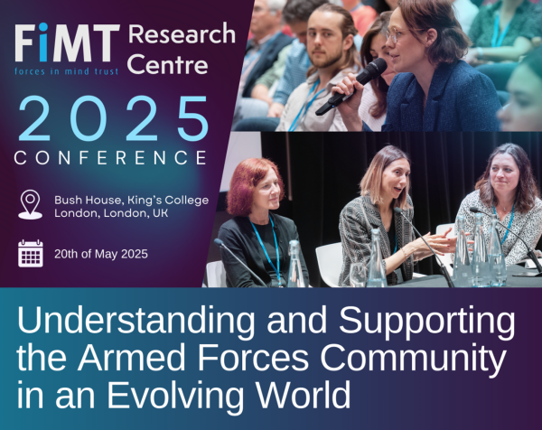 Limited tickets are left for The FiMT Research centre conference 2025! The conference is a must for anyone working with the Armed Forces Community and will be held on Tuesday 20 May 2025, in Bush House, London. Featuring presentations on topical issues impacting the Armed Forces Community, panel discussions, and ample networking opportunities. The conference brings together international delegates from within and outside the Armed Forces sector across research, policymakers, healthcare, service providers and commissioners.