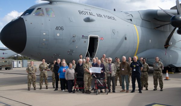 RAF Brize Norton welcomed a group of veterans, staff and volunteers from Blind Veterans UK, the national charity for vision-impaired ex-Service men and women, to visit the air base and present them with £700 which had been raised for the charity.