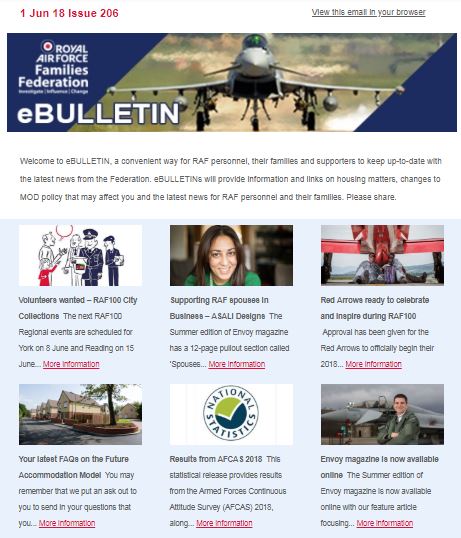 1 June 2018 Royal Air Force Families Federation Children, Families, RAF, Royal Air Force, Transition, Welfare RAF Families Federation – Weekly Newsletter Follow this link for all the latest news from the RAF Families Federation.
